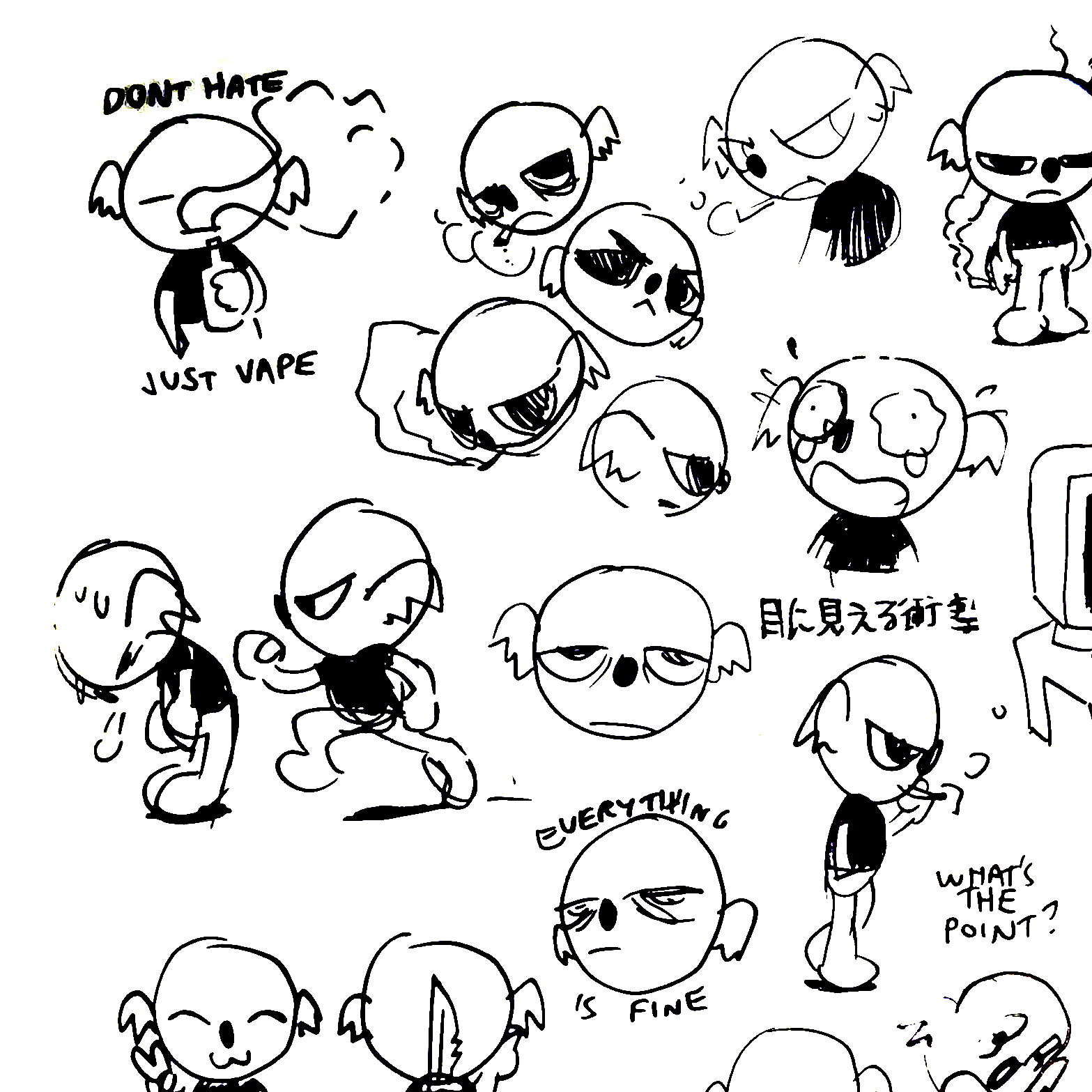 Silly lil guy created in 2015. Started as meme cartoons and comics on social media - now growing into a collection of physical merch and original art.